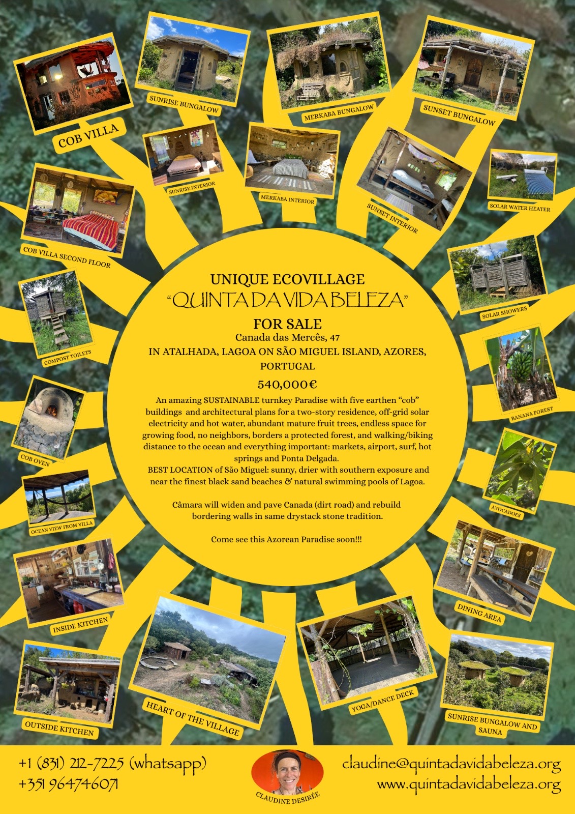Founded in January 2020, Quinta da Vida Beleza is a serene Cob Ecovillage in Atalhada, Lagoa on São Miguel island, Azores. This lush, fruit-filled paradise features cob bungalows and community spaces with breathtaking ocean views. A short walk from the ocean, it offers a tranquil, natural retreat perfect for reconnecting with nature.