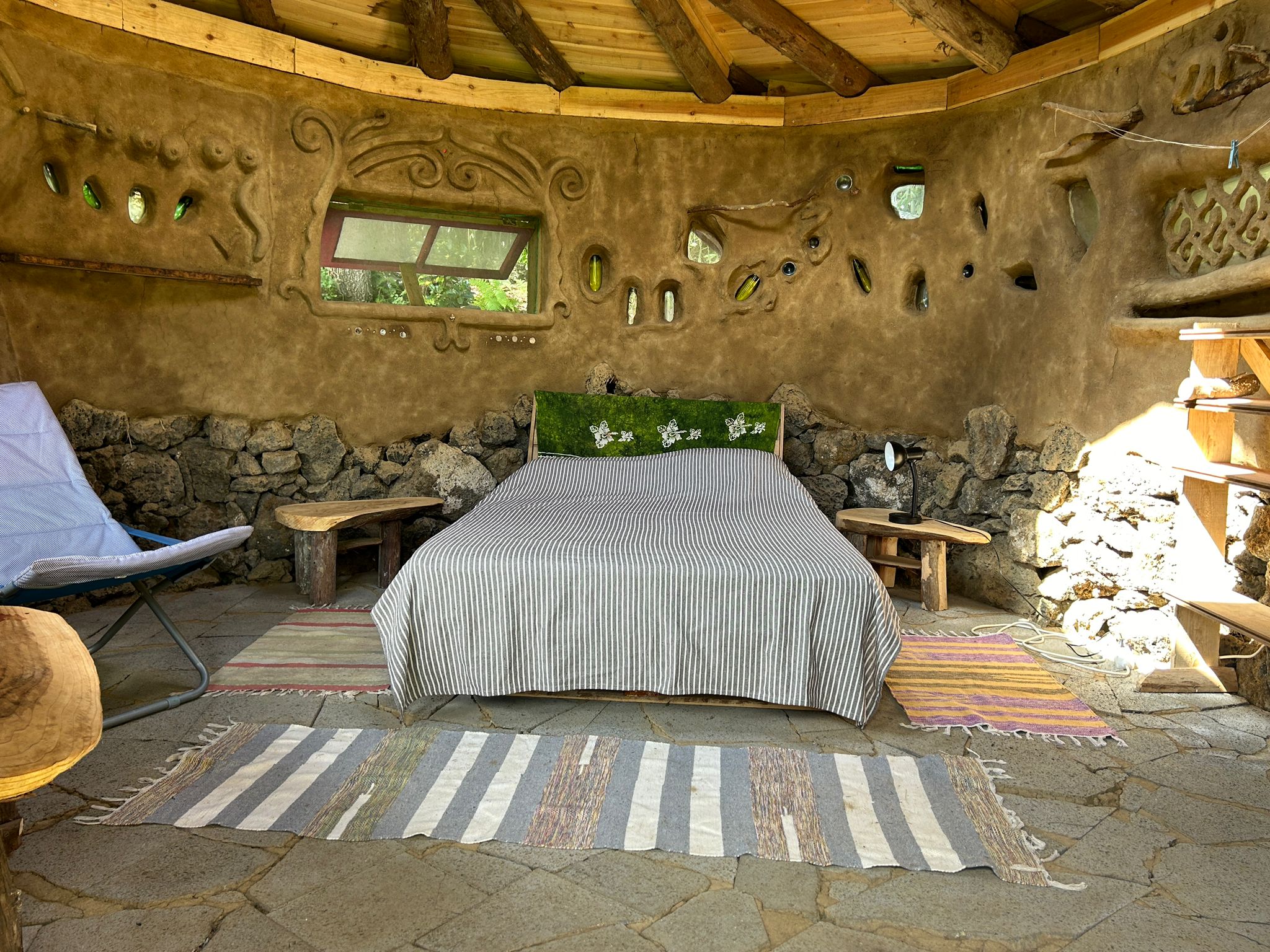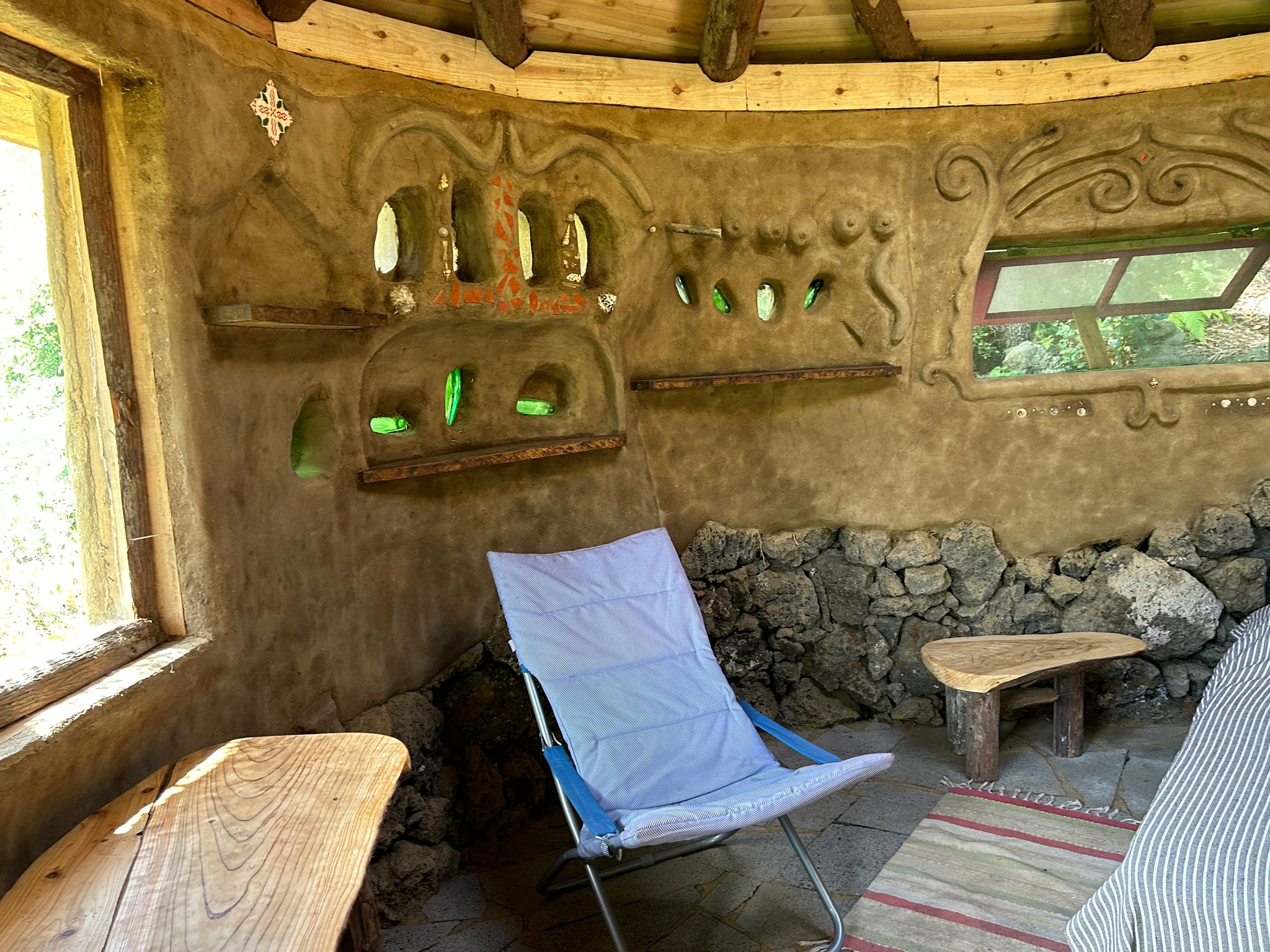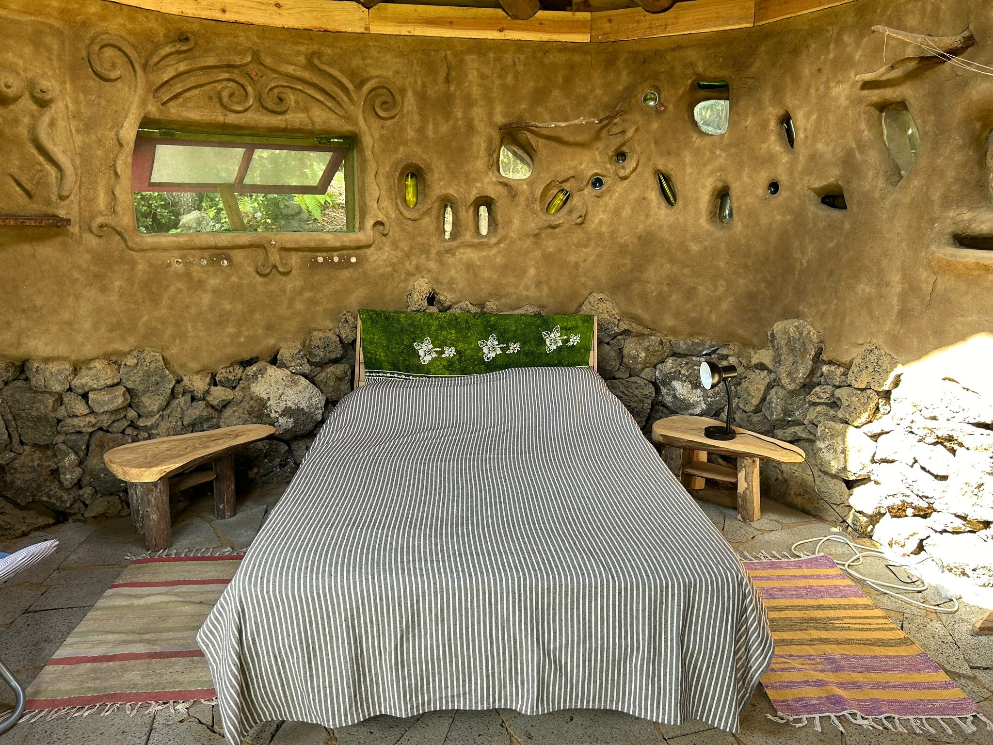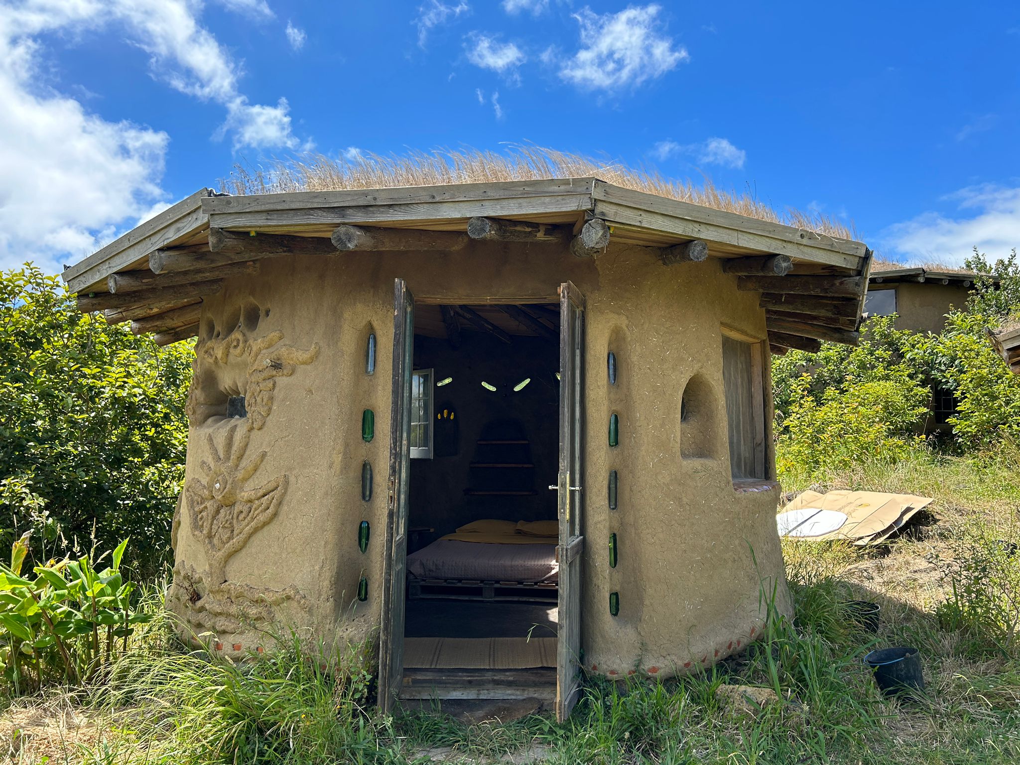For a special experience we have 3 handmade cob (earthen) bungalows that we rent out.