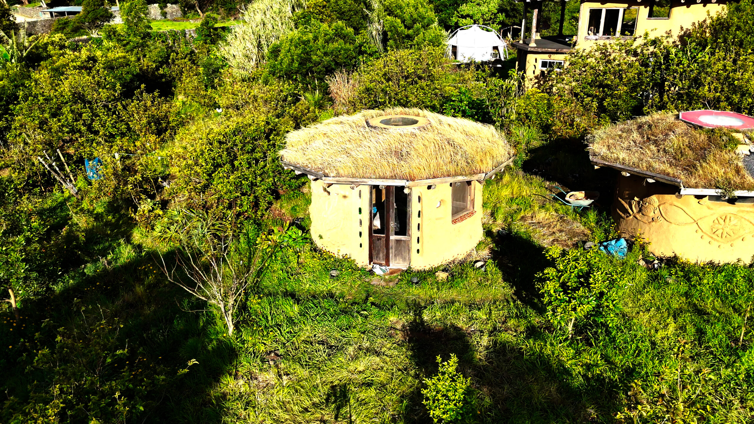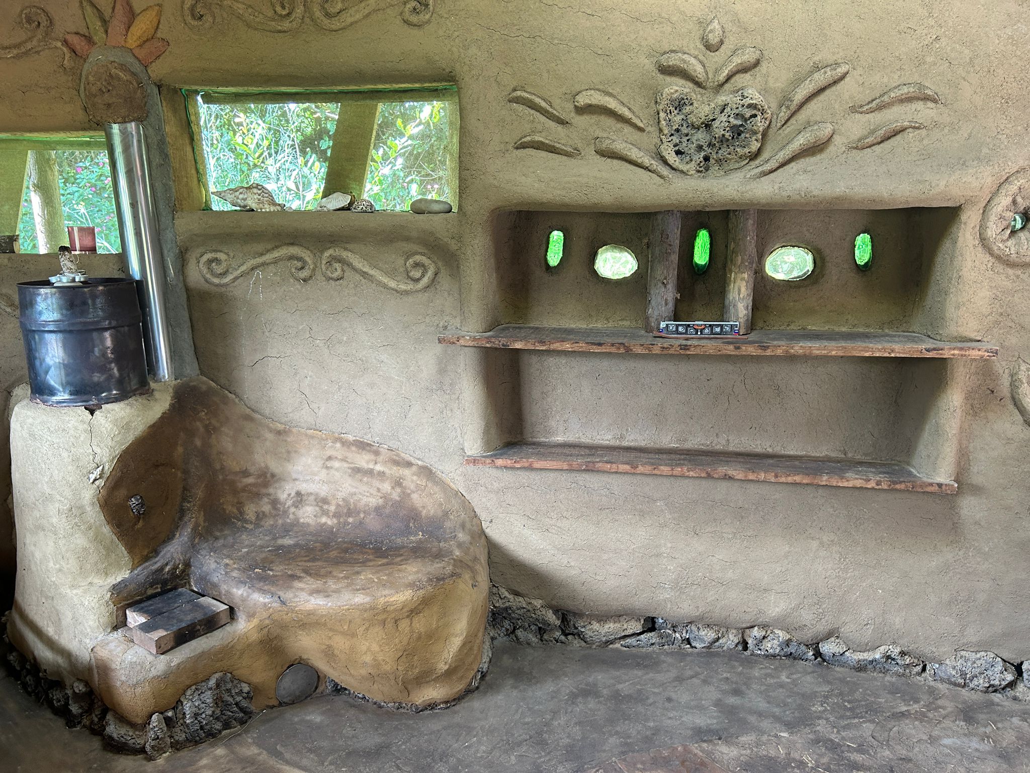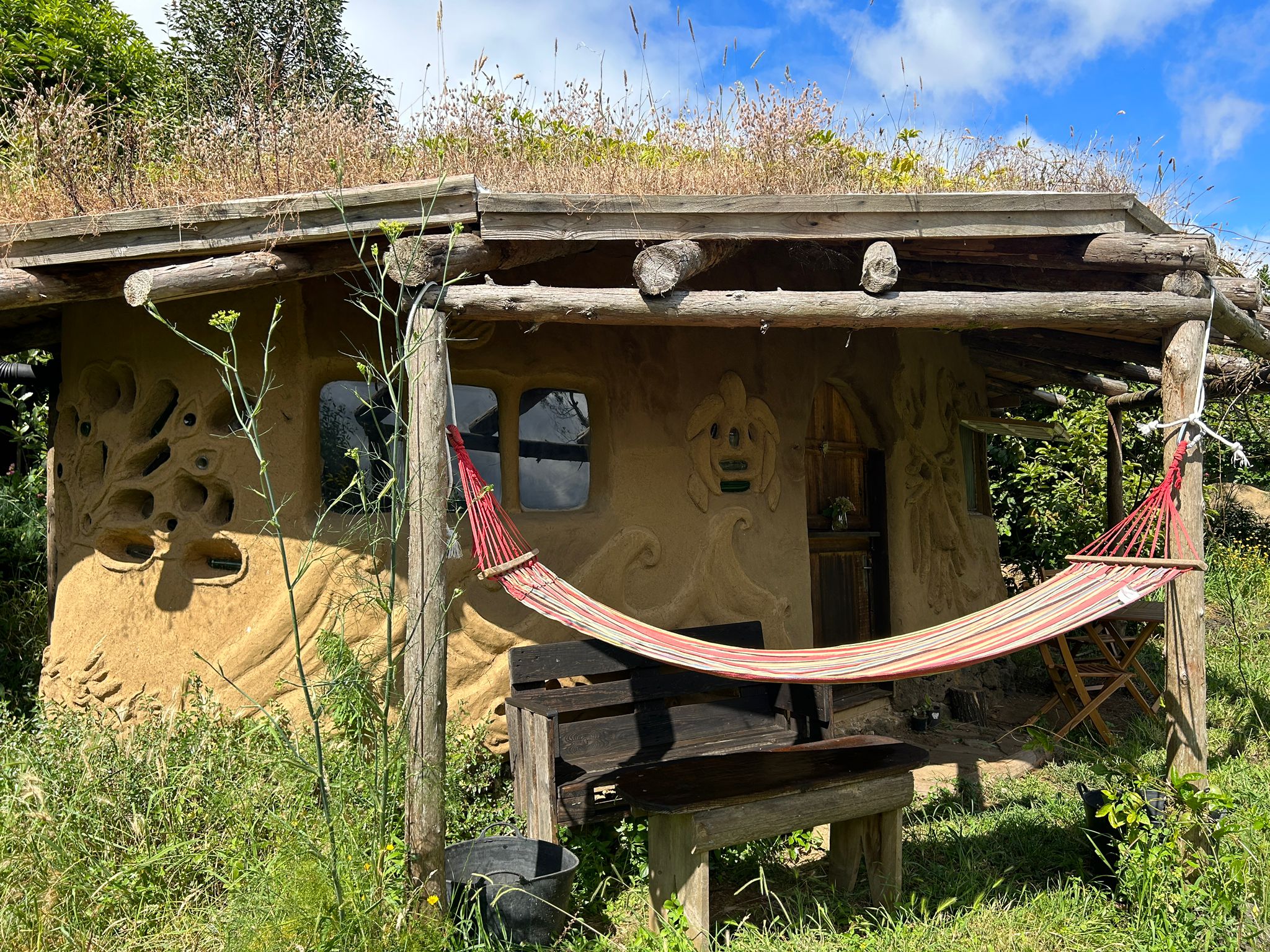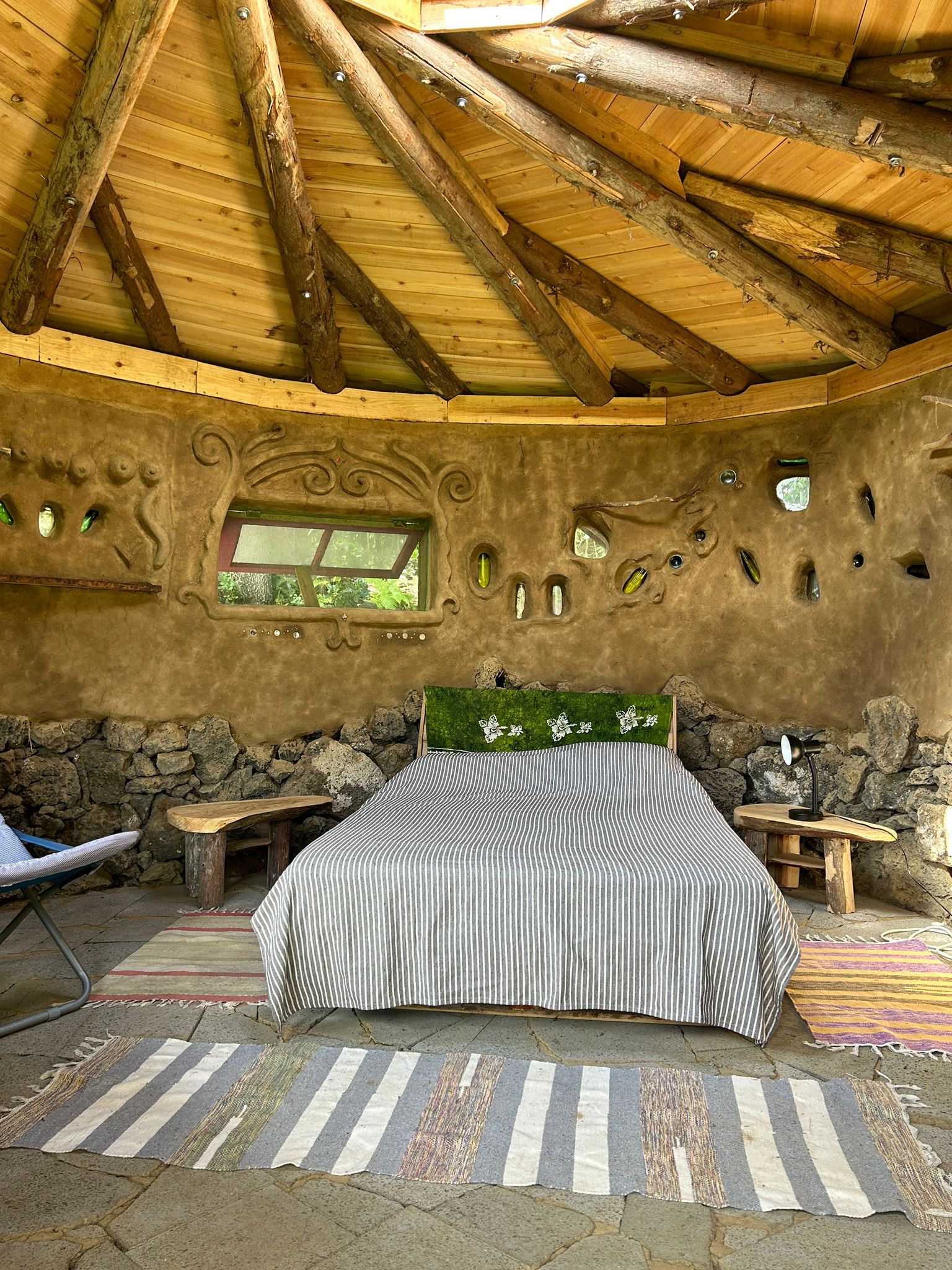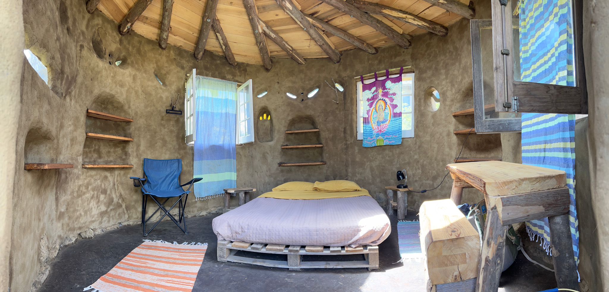For a special experience we have 3 handmade cob (earthen) bungalows that we rent out.